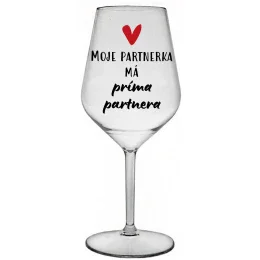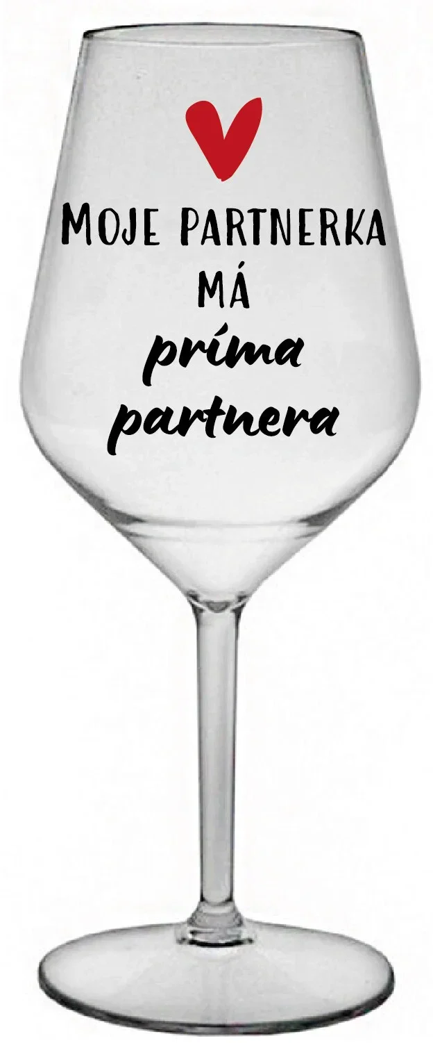 MOJE PARTNERKA MÁ PRÍMA PARTNERA - čirá nerozbitná sklenice na víno 470 ml