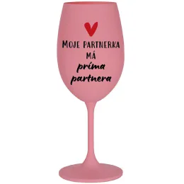 MOJE PARTNERKA MÁ PRÍMA PARTNERA - růžová sklenice na víno 350 ml