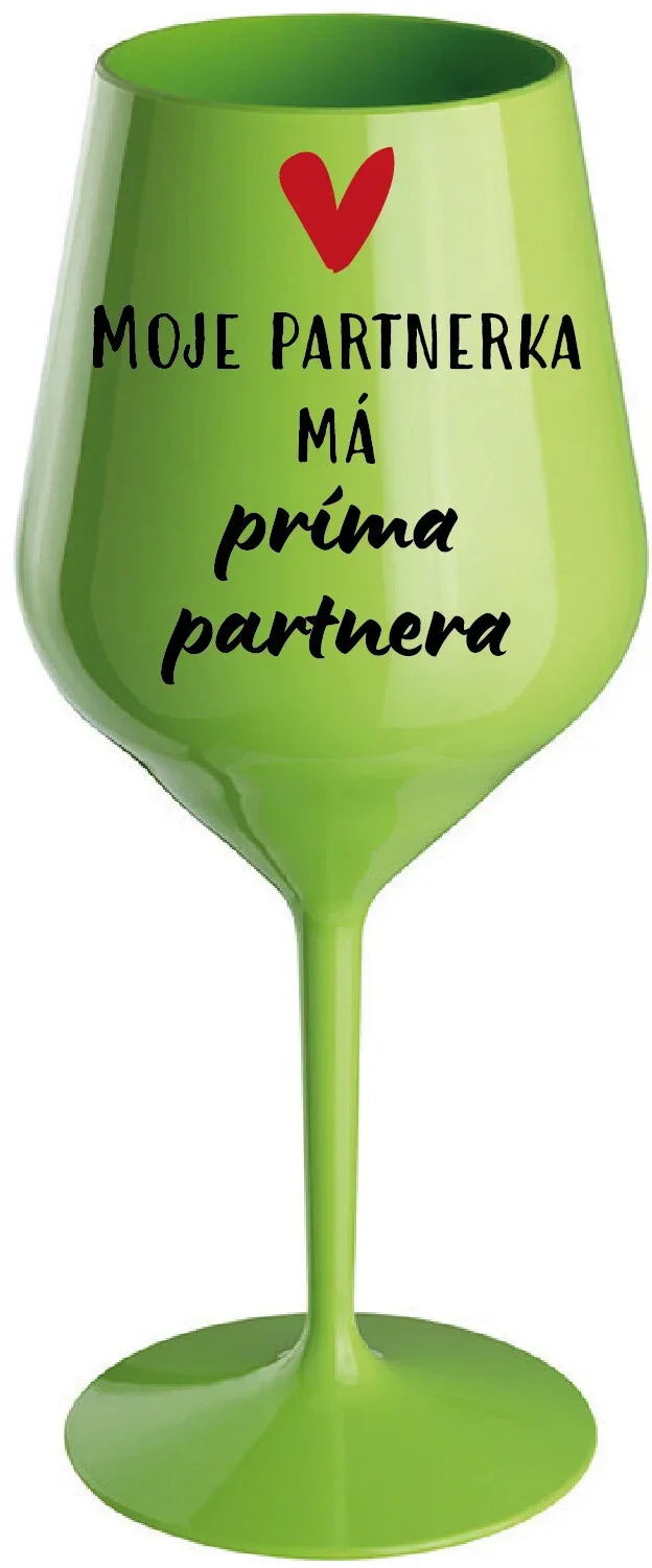 MOJE PARTNERKA MÁ PRÍMA PARTNERA - zelená nerozbitná sklenice na víno 470 ml