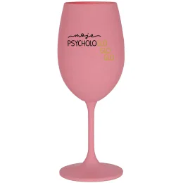 MOJE PSYCHOLOGLOGLOGLO - růžová sklenice na víno 350 ml