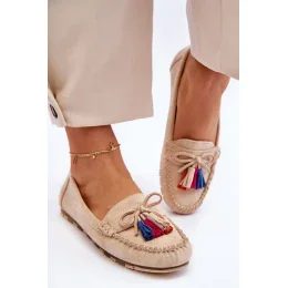 Neuvěřitelně pohodlné dámské mokasíny byly vyrobeny z ekologického semiše. Stélka z přírodní kůže zajistí pohodlí při používání. Tento střih doplní mnoho vašich stylizací. Mokasíny byly usazeny na jemné platformě. Mokasíny mají navíc ozdobnou mašli a střapce.