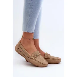 Dámské ažurové mokasíny z ekologické kůže. Zlaté zdobení na přední straně jim dodává jedinečný charakter. Měkká stélka zajistí pohodlí při používání. Tyto mokasíny se skvěle hodí k mnoha různým příležitostem a díky nim bude vaše stylizace jedinečná a stylová.