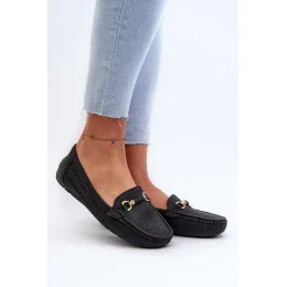 Dámské ažurové mokasíny z ekologické kůže. Zlaté zdobení na přední straně jim dodává jedinečný charakter. Měkká stélka zajistí pohodlí při používání. Tyto mokasíny se skvěle hodí k mnoha různým příležitostem a díky nim bude vaše stylizace jedinečná a stylová.