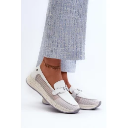 Mokasíny vyrobené z prodyšného materiálu s jemným perforovaným vzorem zajišťují pohodlí a cirkulaci vzduchu uvnitř boty. Ozdobná spona na vrchu dodává eleganci, a platforma spolu s jemným klínkem zaručuje pohodlí při chůzi. Tyto mokasíny jsou skvělou volbou pro ženy, které si váží spojení funkčnosti a stylového vzhledu.