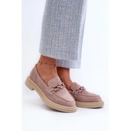 Dámské mokasíny vyrobené z přírodní semiše. Plochý podpatek zajišťuje stabilitu a pohodlí při chůzi. Dekorativní prvek vpředu jim dodává originalitu, což je činí nejen praktickými, ale i módními. Tyto mokasíny budou ideálním doplňkem mnoha různých outfitů, jak ležérních, tak i elegantnějších.
