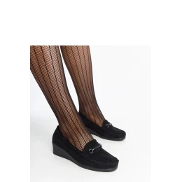 Černé mokasíny na klínu Amela jsou skvělou volbou pro mladou generaci, která oceňuje inovativní design a pohodlí. Vyrobené z vysoce kvalitní gumy, nejenže vypadají elegantně, ale jsou také velmi praktické. Jejich slip-on design s mandlovým nosem z nich dělá velmi snadné na obutí. Tyto moderní boty budou skvělým doplňkem každého casual outfitu. Vnější materiál: Ekologická kůže Zateplení: žádné Materiál podrážky: Guma Barva podrážky: Černá Zapínání: Nastrčené Kolekce: Jaro/Léto