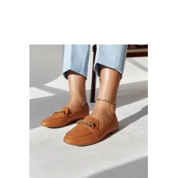Mokasíny Scaletta v teplém odstínu hnědé ozdobené řetízkem jsou skvělou volbou pro letní dny. Jejich plochá špička a moderní design z umělé hmoty nejenže vypadají stylově, ale také poskytují pohodlí při nošení. Tyto moderní mokasíny jsou nízké, lehké a snadno se nasouvají, což je dělá ideálními na procházku nebo setkání s přáteli. Navíc řetízek jim dodává eleganci a originalitu. Vnější materiál je vyroben z ekokůže a podrážka z hnědé umělé hmoty. Zapínání na nasouvání. Ideální na léto!
