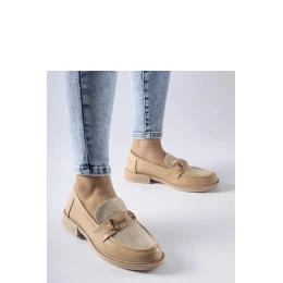 Bežové mokasíny s přezkou Gennaro jsou ideální obuví na léto. Vyrobené z vysoce kvalitní gumy, jsou neuvěřitelně lehké a pohodlné. Jejich elegantní mandlový nos dodává jemnost, a nízký střih zajišťuje volnost pohybu. Největší výhodou těchto mokasín je jejich slip-on design, což znamená, že jsou snadné na obutí a sundání - ideální řešení na horké dny. Bez ohledu na příležitost, tyto mokasíny skvěle ladí s letními outfitmi. Ekologická kůže na povrchu, bez dalšího vyztužení, gumová podrážka v béžové barvě. Jedná se o obuv, která spojuje styl s funkcionalitou.