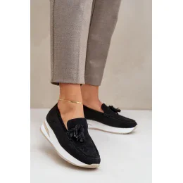 Mokasíny vyrobené z ekologického semiše. Umístěné na platformě a jemném klínu, poskytují pohodlí při nošení a přidávají lehkost postavě. Zaoblené špičky zajišťují, že obuv je neuvěřitelně pohodlná a měkká stélka pečuje o pohodlí po celý den. Celkový vzhled doplňují ozdobné frčky, které dodávají originální charakter a styl. Ideální pro každodenní outfit!