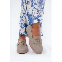 Mokasíny pro ženy vyrobené z přírodní kůže, umístěné na jemném klínu, kombinují eleganci s pohodlím. Zaoblené špičky zajistí pohodlí po celý den, a subtilní zlatá ozdoba vpředu dodává botám výjimečný charakter. Kožená vložka pečuje o správnou absorpci, poskytující pohodlí každým krokem. Tyto mokasíny budou skvělou volbou na každý den, skvěle se hodící jak k elegantním, tak k volným stylizacím.