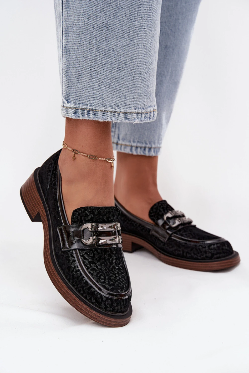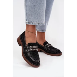 Elegantní dámské mokasíny vyrobené z přírodního semiše. Měkká kůže zaručuje pohodlí při nošení a pečlivé provedení zdůrazňuje jejich nadčasový charakter. Umístěné na stabilním podpatku ve tvaru kostky, poskytují pohodlí po celý den a jemně zdůrazňují postavu. Zaoblené špičky. Umístěný přední ozdobný detail s krystalky dodává originalitu. Tento model se skvěle hodí jak do každodenních stylizací, tak i na speciální příležitosti, jako stylový doplněk ženského šatníku.