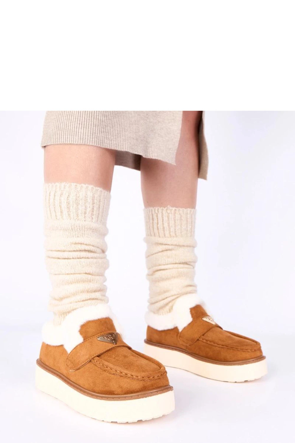 Hnědé mokasíny vyložené kožíškem Loafy jsou ideální volbou pro ženy, které ocení pohodlí, teplo a nadčasový styl. Tyto výjimečné dámské mokasíny byly navrženy s ohledem na chladnější dny, nabízející útulné vyhřívání kožíškem a elegantní, univerzální hnědou barvu, která skvěle ladí s mnoha outfitmi. Díky nim vytvoříte jak ležérní, tak sofistikovaný vzhled, ideální do práce, na procházku nebo setkání s přáteli. Tyto hnědé mokasíny Loafy se vyznačují klasickou, štíhlou linií svršku, která krásně zdůrazňuje nohu, zároveň zajišťující maximální pohodlí po celý den. Měkké, příjemné na dotek kožíšek uvnitř boty obepíná nohy, chrání je před chladem a poskytuje skvělou tepelnou izolaci. Jsou to skvělé dámské mokasíny na podzim a zimu, které si najdou uplatnění všude tam, kde potřebujete spojení elegance a praktičnosti. I když se jedná o neidentifikovanou značku, vyniká pečlivým provedením a péčí o detaily. Solidní zpracování, stabilní podešev a promyšlené švy zaručují odolnost na mnoho sezón. Hnědé mokasíny vyložené kožíškem jsou skvělou alternativou k těžkým kotníčkovým botám - jsou lehké, pohodlné a snadno se obouvají, díky čemuž se rychle stanou vaším oblíbeným obutím na každý den. Univerzální charakter těchto bot znamená, že mokasíny Loafy skvěle ladí jak k džínům, látkovým kalhotám, tak i šatům nebo sukním. Neutrální hnědá barva dodává outfitům teplo a přirozenou eleganci, a měkké vyhřívání kožíškem zaručuje pohodlí i během dlouhých procházek. Když si vyberete hnědé mokasíny vyložené kožíškem Loafy, investujete do módního, funkčního a pohodlného kousku garderóby, který podtrhne váš styl a postará se o teplé nohy v chladnějších dnech.