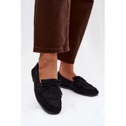 Ploché dámské mokasíny vyrobené z ekosuede jsou stylovým a pohodlným návrhem na každý den. Vepředu jsou ozdobné řasy a vázání ve formě mašle. Měkký materiál zajišťuje pohodlí nošení a plochá podrážka zajišťuje, že model se skvěle hodí k dennímu nošení. Mokasíny skvěle doplní jak klasické, tak volnější styly.