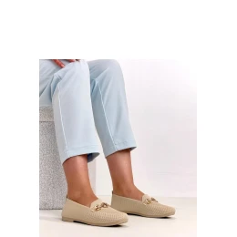 Elegantní mokasíny s zlatým ozdobením vpředu jsou skvělou kombinací pohodlí a jemné elegance. Vyrobené z vysoce kvalitní látky, působí lehce a moderně a zároveň poskytují pohodlí při každodenním nošení. Model má kulatou špičku, která zaručuje pohodlí a přirozené postavení prstů. Nízký svršek z nich činí univerzální boty, které skvěle ladí jak s casualovými stylizacemi, tak s elegantnějšími sestavy. Podpatek výšky 2 cm jemně zdvihne postavu, poskytující stabilitu a pohodlí po celý den. Zasouvací konstrukce umožňuje rychlé a bezproblémové obouvání. Stélka z látky zvyšuje pohodlí nošení a podporuje správnou cirkulaci vzduchu. Je to ideální volba pro ženy, které ocení klasický střih obohacený módním, zlatým detail.