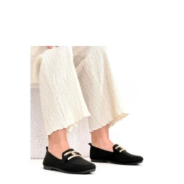 Jedinečné mokasíny zdobené efektními zirkony a kovovým detailom jsou nabídkou pro ženy, které milují decentní lesk a stylové dokončení. Model vyrobený z vysoce kvalitní látky vypadá lehce a elegantně, skvěle doplňujíc jak každodenní, tak elegantní outfit. Kulatá špička zajistí pohodlí a volnost pro prsty, nízký střih zase zaručí, že jsou boty neuvěřitelně pohodlné na nošení každý den. 2cm vysoký podpatek jemně zvedne postavu, zajišťující stabilitu a pohodlí po celý den. Zapínání na zasunutí umožňuje rychlé a snadné obutí, což z modelu činí praktický a funkční. Stélka z látky zvyšuje pohodlí nošení a podporuje správnou cirkulaci vzduchu. Jsou to mokasíny, které spojují klasický střih s efektními ozdobami, dodávající každému outfitu elegantní charakter.