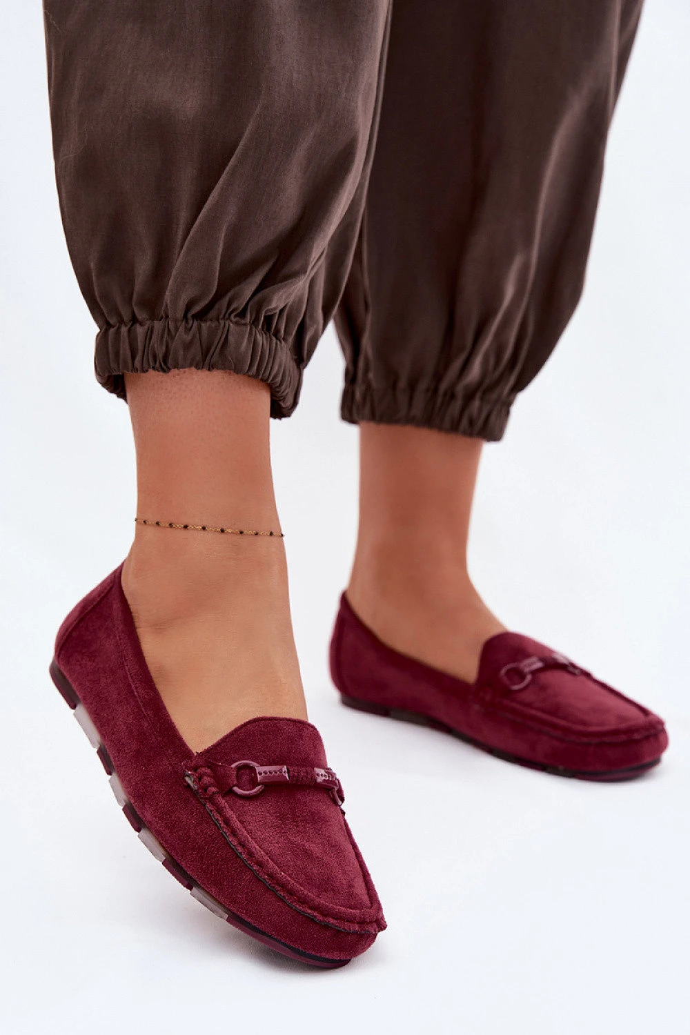 Mokasíny pro ženy z ekologického semiše jsou stylovým a pohodlným návrhem na každý den. Plochý střih zajišťuje pohodlí při nošení, což z něj činí perfektní model pro dlouhodobé používání. Vepředu je ozdobný detail, který celku dodává elegantní charakter a zdůrazňuje moderní vzhled obuvi. Vložka z přírodní kůže zvyšuje pohodlí a přizpůsobení se noze. Je to ideální volba pro ženy, které ocení klasiku, pohodlí a decentní eleganci ve svých každodenních stylizacích.
