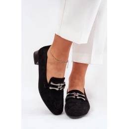 Mokasíny S Ozdobou Na Jemném Podpatku Eko Semišové Černé Pillitha