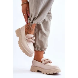 Tyto módní mokasíny byly vyrobeny z ekologické kůže. Stojí na platformě a plochém podpatku. Mokasíny mají na přední straně ozdobný řetízek. Pohodlné nošení obuvi zajistí stélka z ekokůže. Pultík na patě je navíc u těchto bot vyztužený.