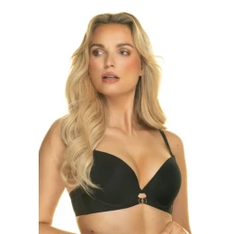 Biustonosz Konrad Molly w kolorze czarnym to nowoczesna i minimalistyczna propozycja dla kobiet, które cenią gładką, elegancką bieliznę z efektem push-up. Miseczki perfekcyjnie modelują i unoszą biust, optycznie go powiększając i tworząc piękny dekolt. Gładka powierzchnia sprawia, że biustonosz nie odznacza się pod ubraniem – idealny pod dopasowane stylizacje.