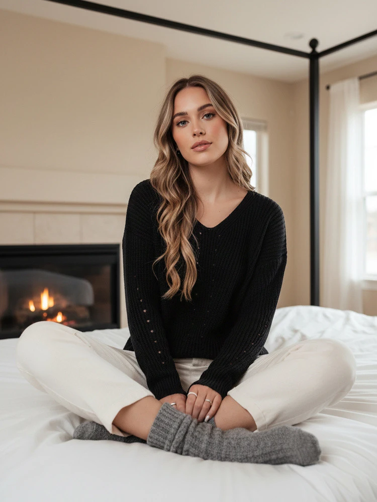 Stylový svetr rovného střihu, který kombinuje klasiku s pohodlím. Měkká tkanina a jemný vzor zaručují pohodlí, zatímco výstřih do V dodává elegantní nádech. Ideální pro různé ležérní i formálnější outfity.