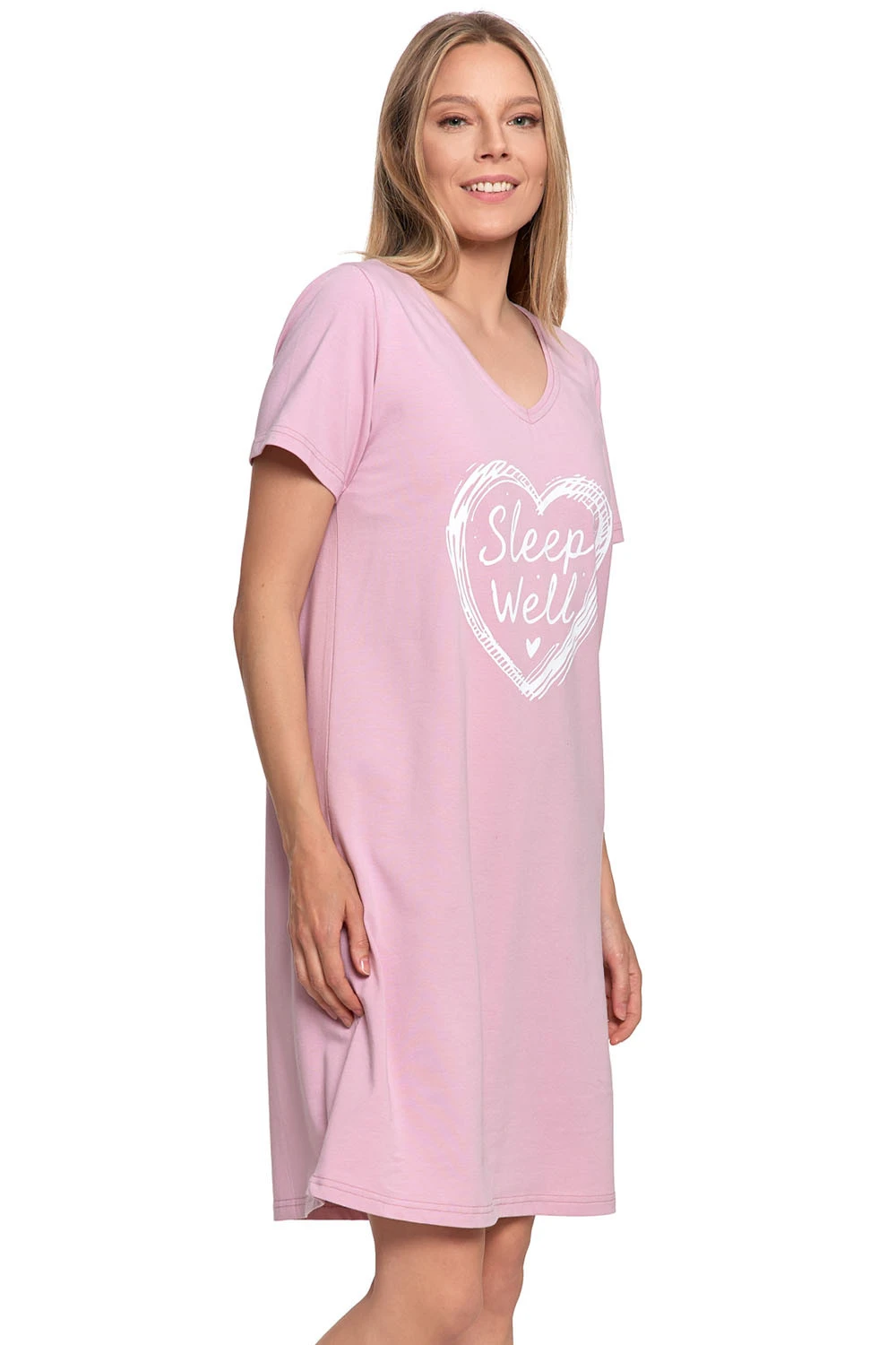 Noční košile značky Moraj. model PDK3100-022. výrobek je vyroben z 65 % bavlny, 30 % polyesteru, 5 % elastanu. délka rukávu: krátký. dámský výrobek. typ výstřihu: ve tvaru srdce. délka: krátký.