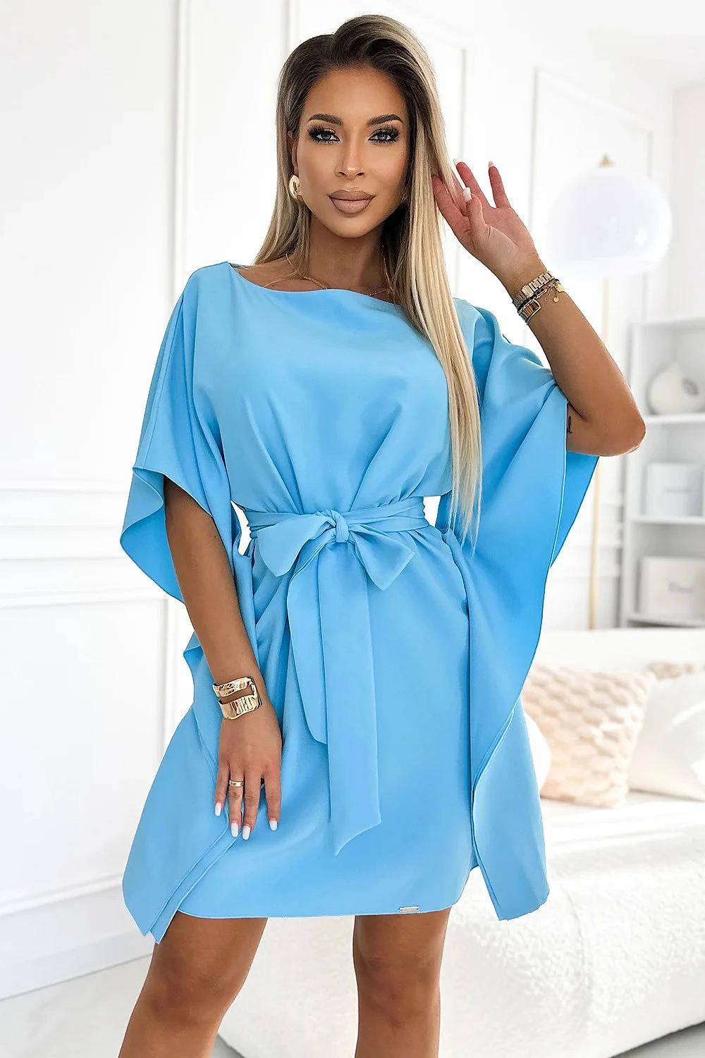 Šaty SOFIA Butterfly s páskem - modré. Z látky příjemné na dotek. značka numoco. polská výroba.