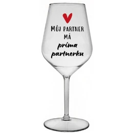 MŮJ PARTNER MÁ PRIMA PARTNERKU - čirá nerozbitná sklenice na víno 470 ml