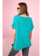 Mušelínová halenka s náhrdelníkem světle modrozelená
