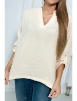 Mušelínová halenka s ohrnutými rukávy světle béžová