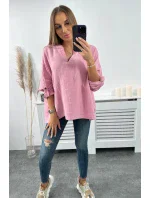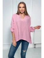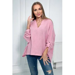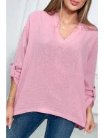 Mušelínová halenka s ohrnutými rukávy světle růžová
