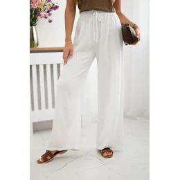 Mušelínové kalhoty se širokou nohavicí bílý