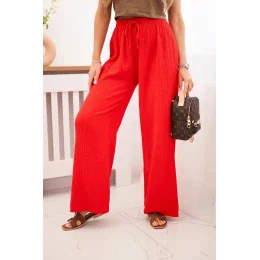 Objevte jedinečné kalhoty vyrobené z jemného, prodyšného mušelínu, které poskytují nevídaný komfort nošení i v nejteplejších dnech. Jejich široká nohavice dodává celému outfitu módní, moderní charakter, opticky prodlužuje postavu a přidává lehkost celkovému stylu. Ideální pro každodenní nošení, do práce i na výjimečné příležitosti – tyto kalhoty se skvěle kombinují s různými topy, od minimalistických triček, přes elegantní halenky až po svetry. Vsaďte na klasický, ale zároveň sofistikovaný design, který vám umožní užívat si pohodlí i originální styl. Velikost je univerzální a odpovídá ženám nosícím velikosti S, M nebo L.