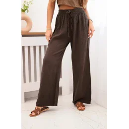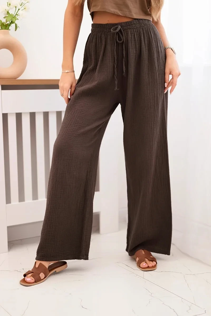 Mušelínové kalhoty se širokou nohavicí hnědý