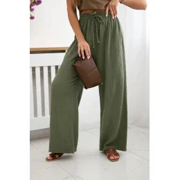 Mušelínové kalhoty se širokou nohavicí khaki