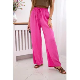 Objevte jedinečné kalhoty vyrobené z jemného, prodyšného mušelínu, které poskytují nevídaný komfort nošení i v nejteplejších dnech. Jejich široká nohavice dodává celému outfitu módní, moderní charakter, opticky prodlužuje postavu a přidává lehkost celkovému stylu. Ideální pro každodenní nošení, do práce i na výjimečné příležitosti – tyto kalhoty se skvěle kombinují s různými topy, od minimalistických triček, přes elegantní halenky až po svetry. Vsaďte na klasický, ale zároveň sofistikovaný design, který vám umožní užívat si pohodlí i originální styl. Velikost je univerzální a odpovídá ženám nosícím velikosti S, M nebo L.