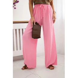 Mušelínové kalhoty se širokou nohavicí světle růžová