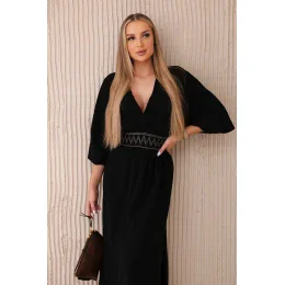 4. Mušelínové šaty s výšivkou v pase černý
