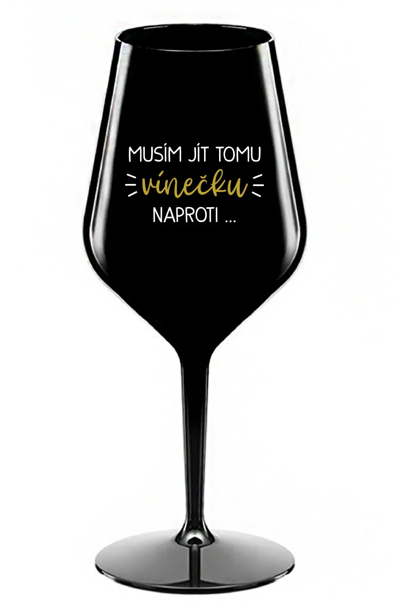 MUSÍM JÍT TOMU VÍNEČKU NAPROTI... - černá nerozbitná sklenice na víno 470 ml