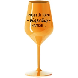 MUSÍM JÍT TOMU VÍNEČKU NAPROTI... - oranžová nerozbitná sklenice na víno 470 ml