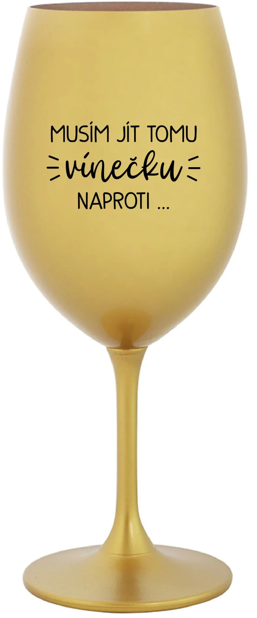 MUSÍM JÍT TOMU VÍNEČKU NAPROTI... - zlatá sklenice na víno 350 ml