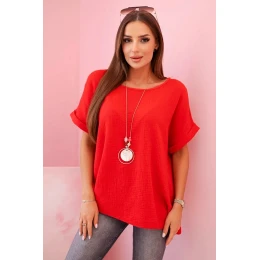 : Muslínová blůza s náhrdelníkem - červená