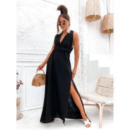 Černé dámské mušelínové šaty se zavazovacím výstřihem (8298)