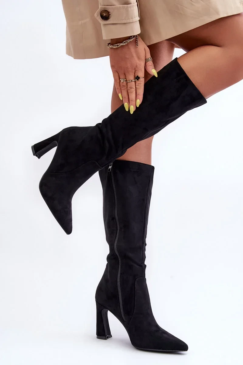 Stylové dámské kozačky s předkolením. Vyrobeno z příjemného eko semiše. Tento model je umístěn na podpatku a má jemné švy. Zpevněný patník. Zipy jsou na vnější straně boty. Použijte je ve svých stylizacích! Musí být vaše! Při výběru velikosti se řiďte tabulkou velikostí.