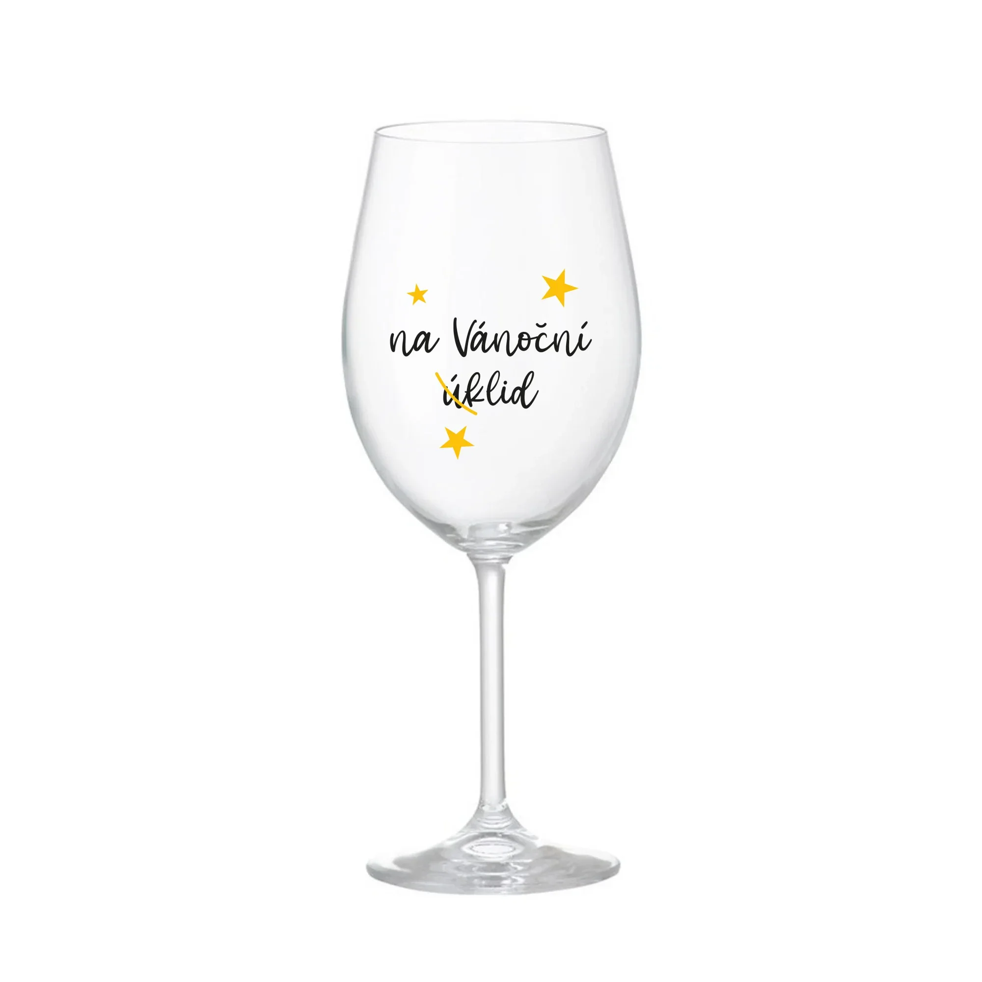 Vinná čirá sklenice s originálním motivem NA VÁNOČNÍ ÚKLID je krásným a osobitým dárkem, které ale využijete i Vy sami třeba ve chvílích, kdy si budete chtít zpříjemnit náročný den. Tyto originální vinné sklenice jsou totiž nejen pro výjimečné události, ale i pro běžné večery, které si chcete zpříjemnit sklenkou dobrého vína. Jistě proto potěší každého milovníka vína, i toho, kdo si umí svůj život vychutnat plnými doušky. Materiál sklo. Vyrobené s láskou v ČR