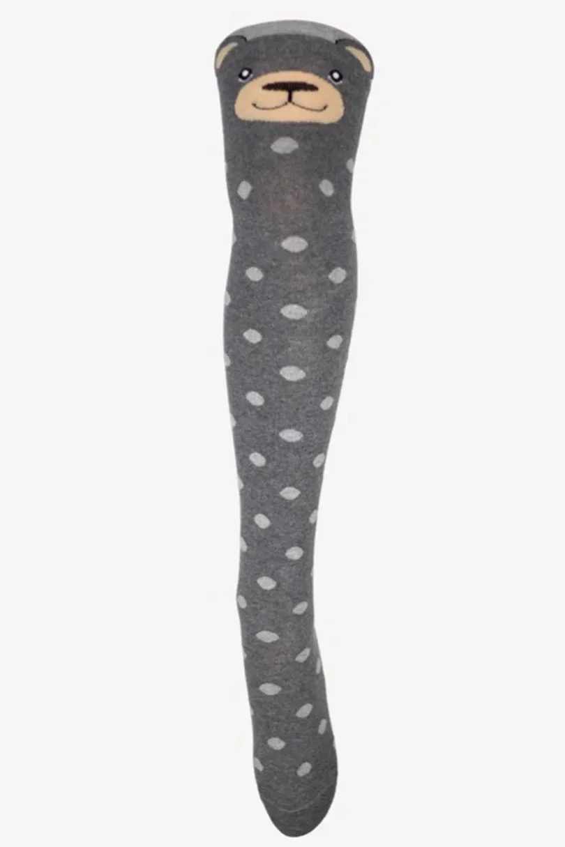 Bavlněné puntíkaté ponožky pro ženy. Široký, netlačící lem se vzorem medvídkovy hlavy pro pohodlí a udržení ponožek na místě. Krycí, matné, s plochým švem a neviditelně zesílenými prsty. Ideální pro chladné dny.