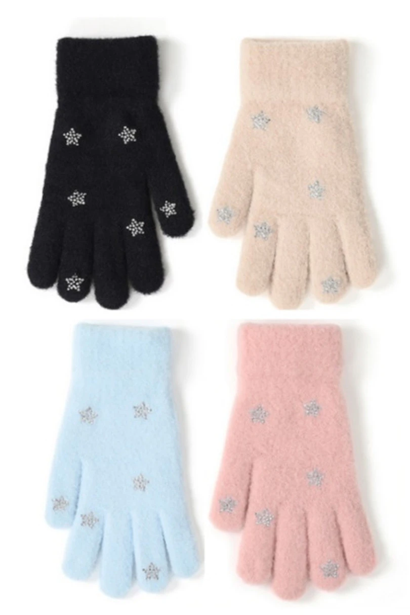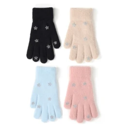 Roztomilé dívčí pětiprsté rukavice jsou kombinací stylu, pohodlí a funkčnosti. Jsou vyrobeny z výjimečně měkkého, nadýchaného materiálu, poskytují teplo a mimořádně příjemný pocit při nošení. Zdobí je třpytivé hvězdičky, dodávají zimnímu stylingu kouzlo a funkce dotykového displeje umožňuje používat telefon nebo tablet bez nutnosti rukavice sundávat. Ideální pro chladné dny.