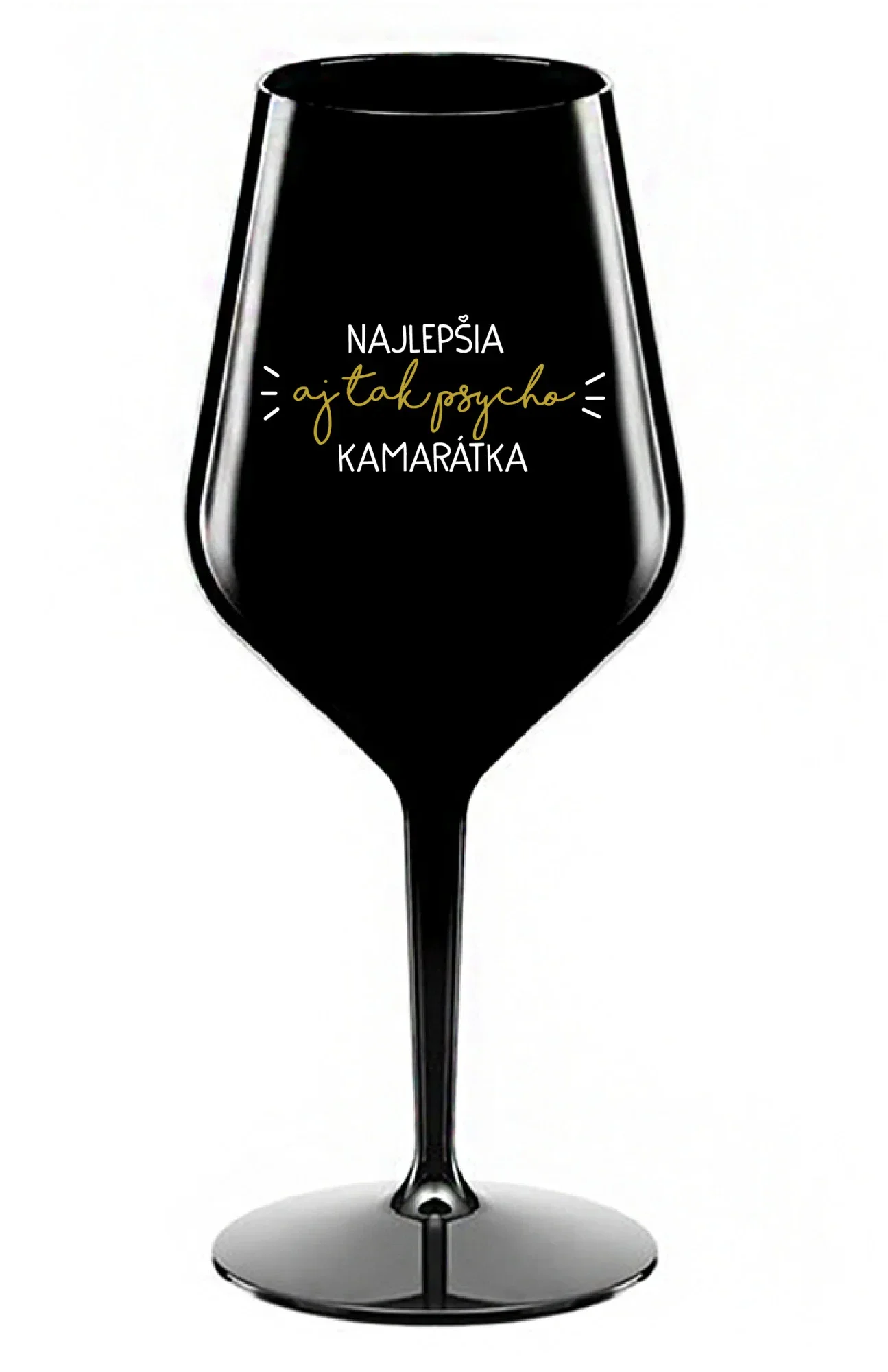 NAJLEPŠIA AJ TAK PSYCHO KAMARÁTKA - čierny nerozbitný pohár na víno 470 ml