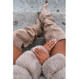 Náklopové dámské kozačky na podpatku béžové Ysolienne