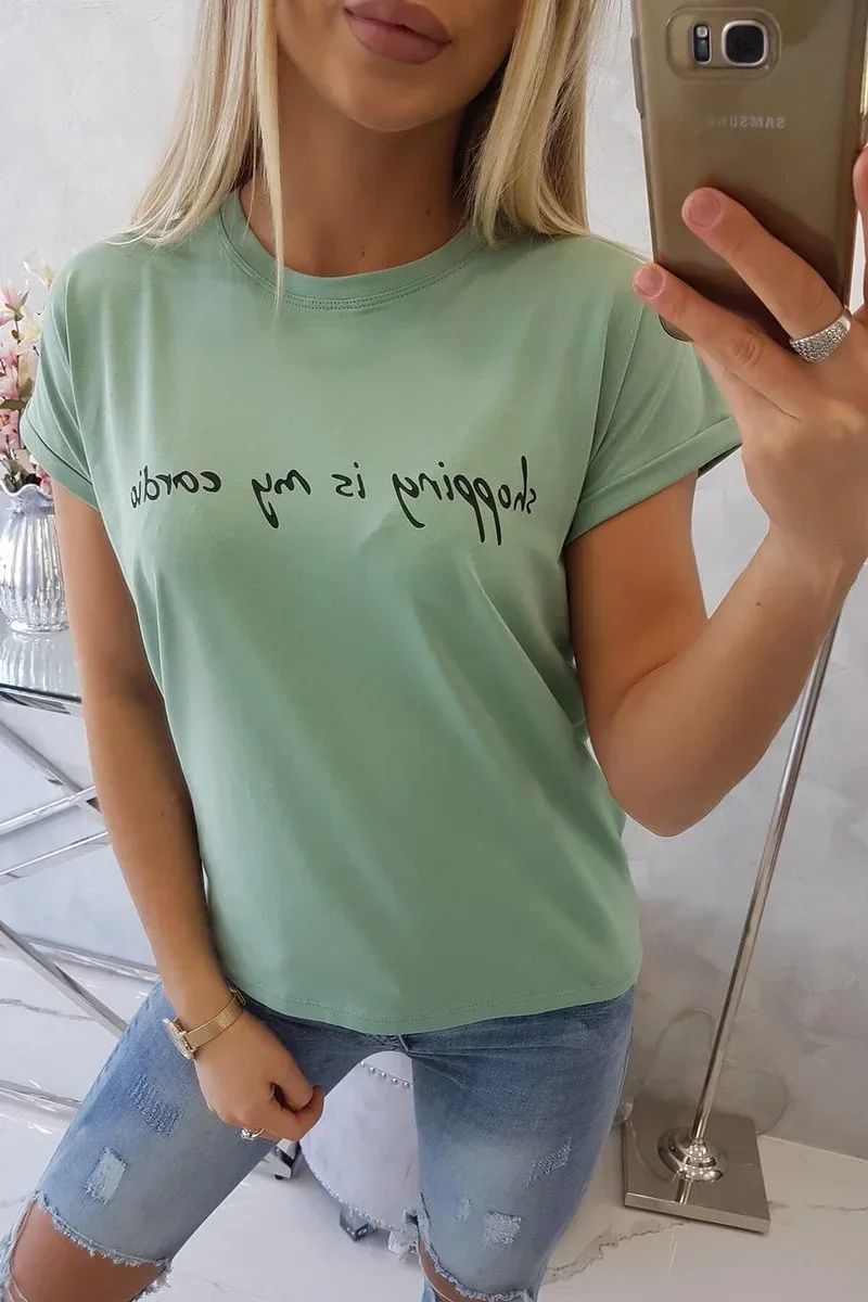 Nakupování je moje kardio tmavě mátová halenka