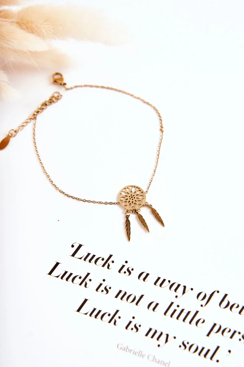 Krásný náramek na nohu na tenkém řetízku z nerezové oceli. Je délkově nastavitelná. Uprostřed náramku je ozdobný prvek v podobě lapače snů. Tento typ šperku je skvělým doplňkem ke stylingu nejen každodenního, ale i elegantnějšího. Tento model má klasické zapínání. Nezapomeňte se také podívat na další modely šperků dostupné v naší nabídce!